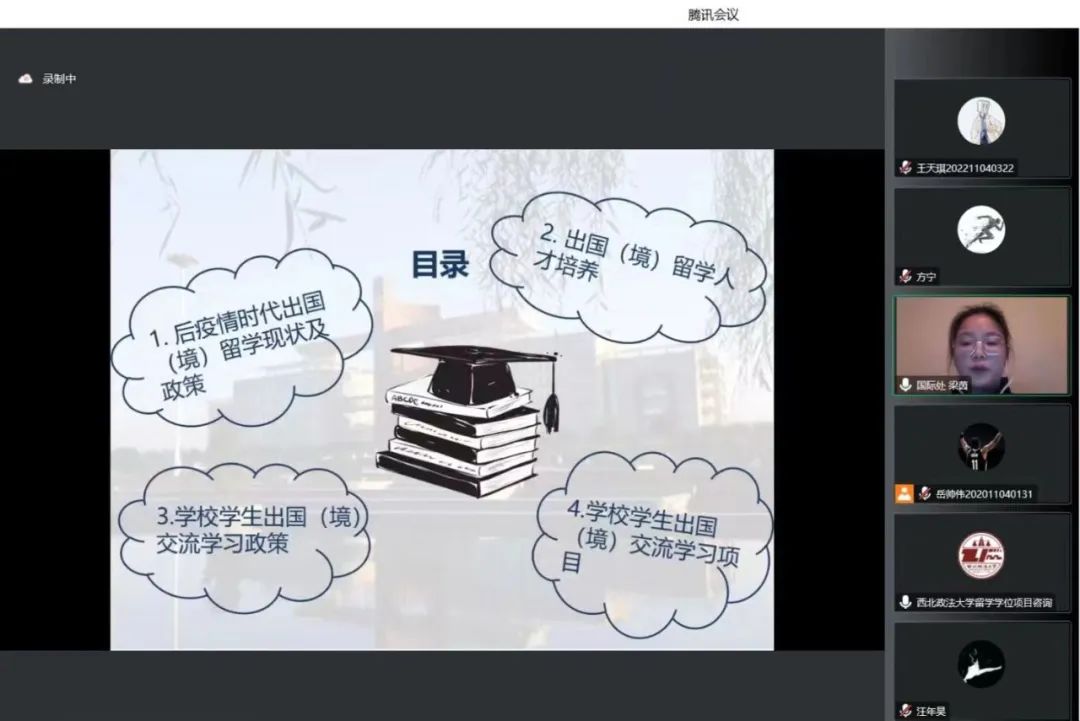 为落实风车动漫 培养具有“国际视野”人才的育人理念,10月24日晚,风车动漫 通过腾讯会议开展“关于出国交流学习政策和学生学业规划”宣讲活动。本次会议特邀风车动漫 国际处国际合作科梁茵、国际处留学项目办公室武媛媛进行主讲,2022级全体本科生及硕士研究生参加。本次活动由院团委书记、2022级辅导员方宁主持。