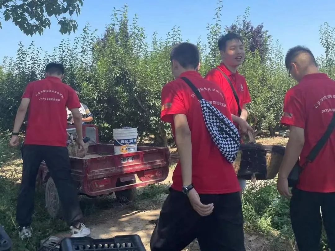 立体循环调研完成后,正值村中农户水果成熟时,调研小组又前往村中果园和果农们一起收获梅子,装箱上车,共享丰收成果。