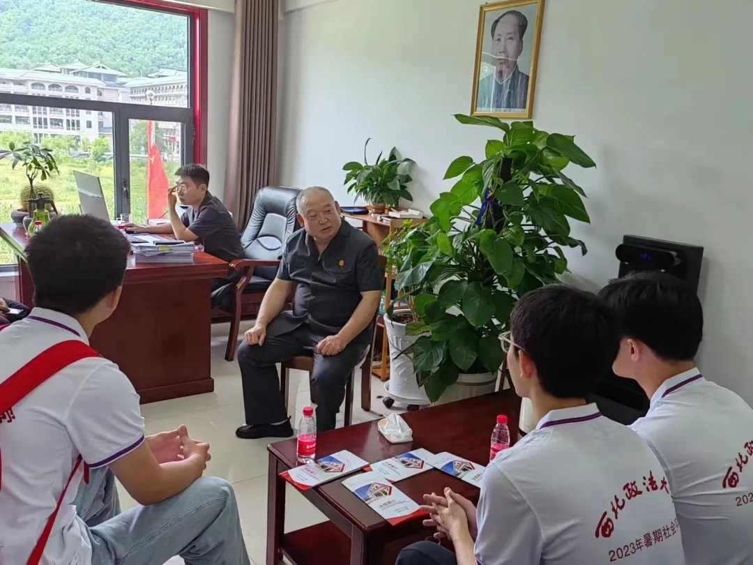 随后,实践团队和法庭负责人在庭长办公室内开展了一次实践交流会。团队成员纷纷表示自己在实践调研中对于司法实践工作有了切身的感受,自己各方面能力也都得到了很大的锻炼和提升。张虎庭长为大家遇到的问题和困难给出专业的建议。他表示,希望大家能将在学校中学到的理论知识与学习实践相结合,学以致用,为将来法律工作的成长发挥作用,为我国法治法律体系的健全贡献自己的一份力量。