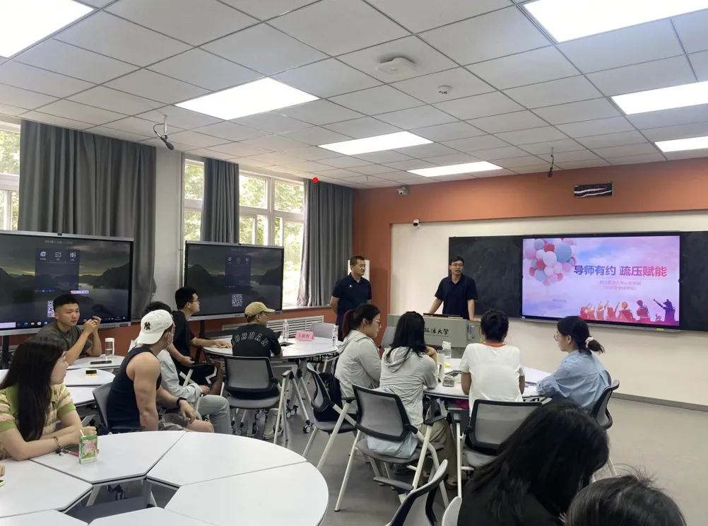 活动开始,王老师首先分析了当前大部分研究生压力来源于学业压力和生活压力。针对学业压力,王老师结合自身经历从课业考试、论文撰写、就业等问题入手,透彻分析了各种压力产生的原因,并针对性地提出对策。针对生活压力,王老师倡导大家要制定合理的时间计划表,按时休息,劳逸结合,疏解了大家在生活上的的情绪困扰。