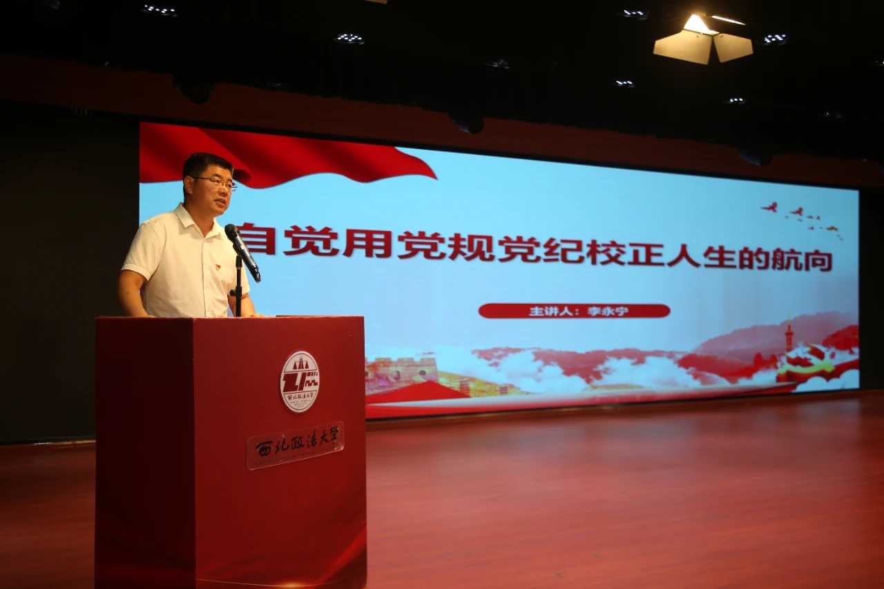 李永宁以“自觉用党规党纪校正人生的航向”为主题,强调了学生党员认真开展党纪学习教育的必要性和重要性,并结合警示教育案例,从学纪以正己、知纪以省己、明纪以律己、守纪以克己等四个方面重点阐述了如何用党规党纪校准思想坐标、端正行为举止、校正人生航向。他表示,党规党纪的学习不是一时的,毕业生党员要在今后的工作和学习中,始终保持对党的忠诚和热爱,不断加深对党规党纪的理解和掌握,以实际行动践行党员的初心和使命,不断提高自身素质,增强干事创业本领,为党的各项事业贡献自己的力量。