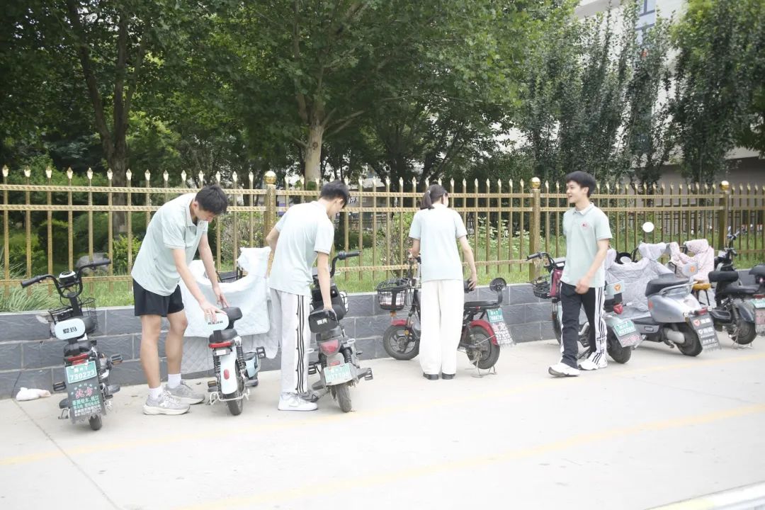 实践队在生态环境局的引领下,采取分组分区域的方式于县政府周边道路全面推行“干扫—冲洗—湿扫—洒水—喷雾”五位一体的机械化清扫模式作业,对政府周边道路绿植区的落叶、枯枝等垃圾予以全方位、无死角的清扫,同时实践队协助进行电动车整理活动,为“美丽枣强”添砖加瓦。