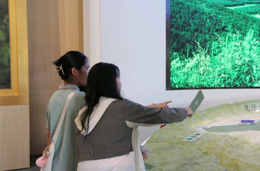 在塞罕坝展览馆中,青寻小队跟随讲解员的步伐,全面了解塞罕坝的发展历程和生态保护的重要性。团队成员被塞罕坝机械林场的建设史和发展史深深震撼,也被三代植树人的故事、艰苦创业史和其身上的塞罕坝精神所感染。团队成员不仅亲身体验到了塞罕坝精神中的坚持绿色发展、尊重生态和谐的理念,更让成员们深刻体会到了保护生态环境的必要性和紧迫性。