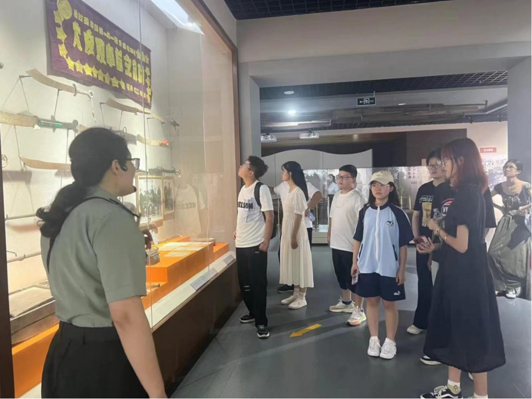 随后团队成员来到介绍解放战争时期的展厅。队员们通过各种图文资料和实体文物,了解到中国共产党带领广大群众与国民党进行了陇海战役、巨金鱼战役等大大小小的战斗,洞察游击战争中所蕴含的智慧,明晰“胜利是由广大人民用小推车推出来的”深刻道理,领悟中国共产党受人民爱戴的真正原因。那些珍贵的文物、生动的历史场景让队员们深刻体会到解放战争的艰辛与伟大,让他们更加珍惜今天来之不易的和平与安宁。
