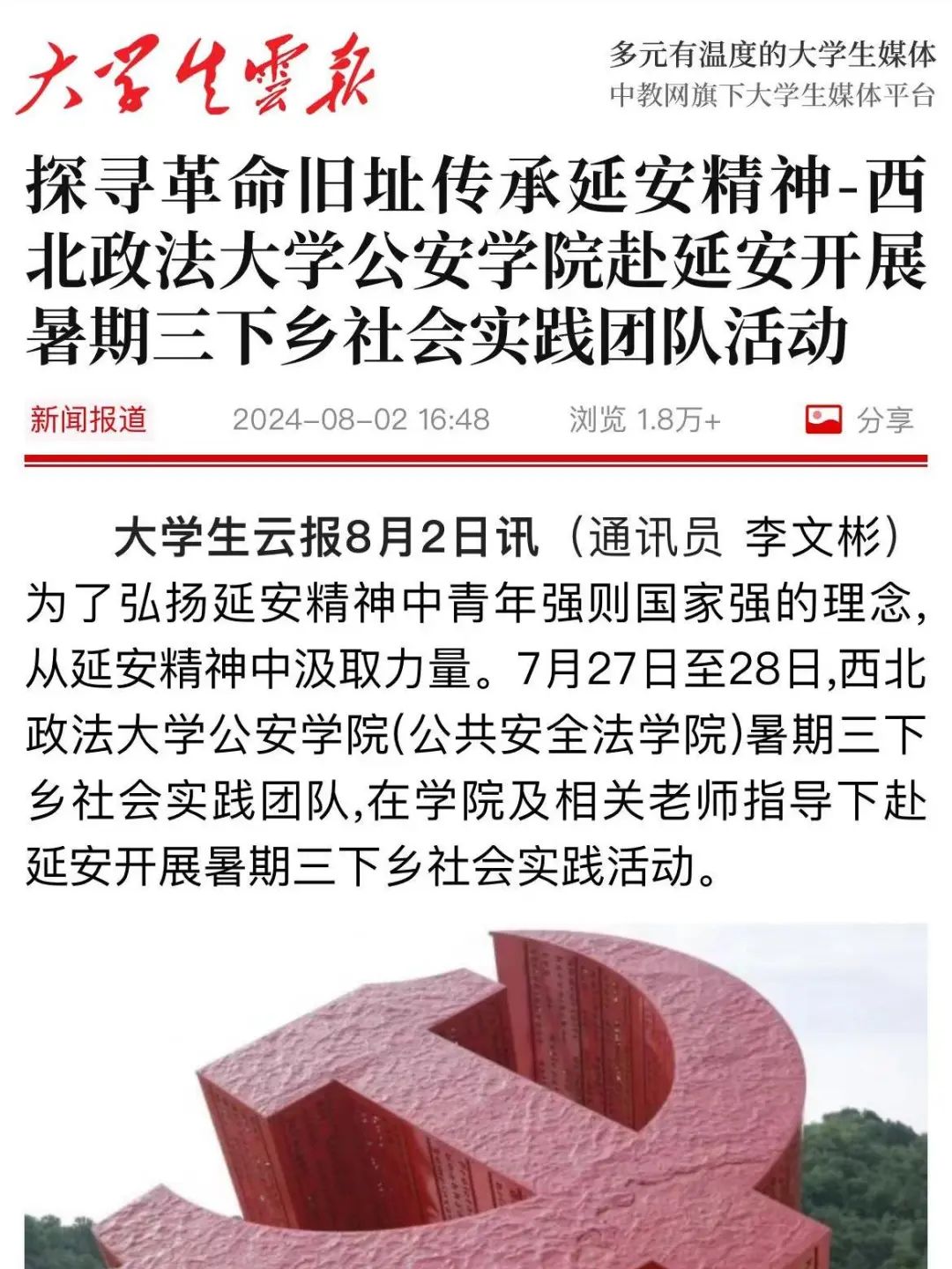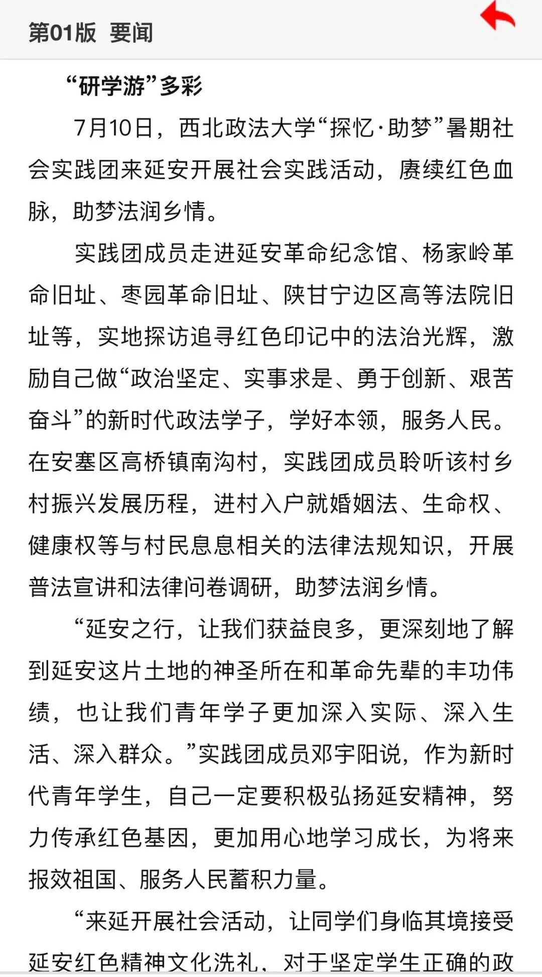 风车动漫 “探忆·筑梦”实践队开展为期两周的三下乡活动,在风车动漫 党委副书记李霞,团委书记方宁,辅导员李沛君、卫妍卓指导下为新时代法治建设贡献自己的力量。游览革命旧址,感悟延安精神。本次活动受到延安日报,大学生云报等多家媒体关注和报道,展现了西法大青年优良面貌,为学校学院赢得口碑。