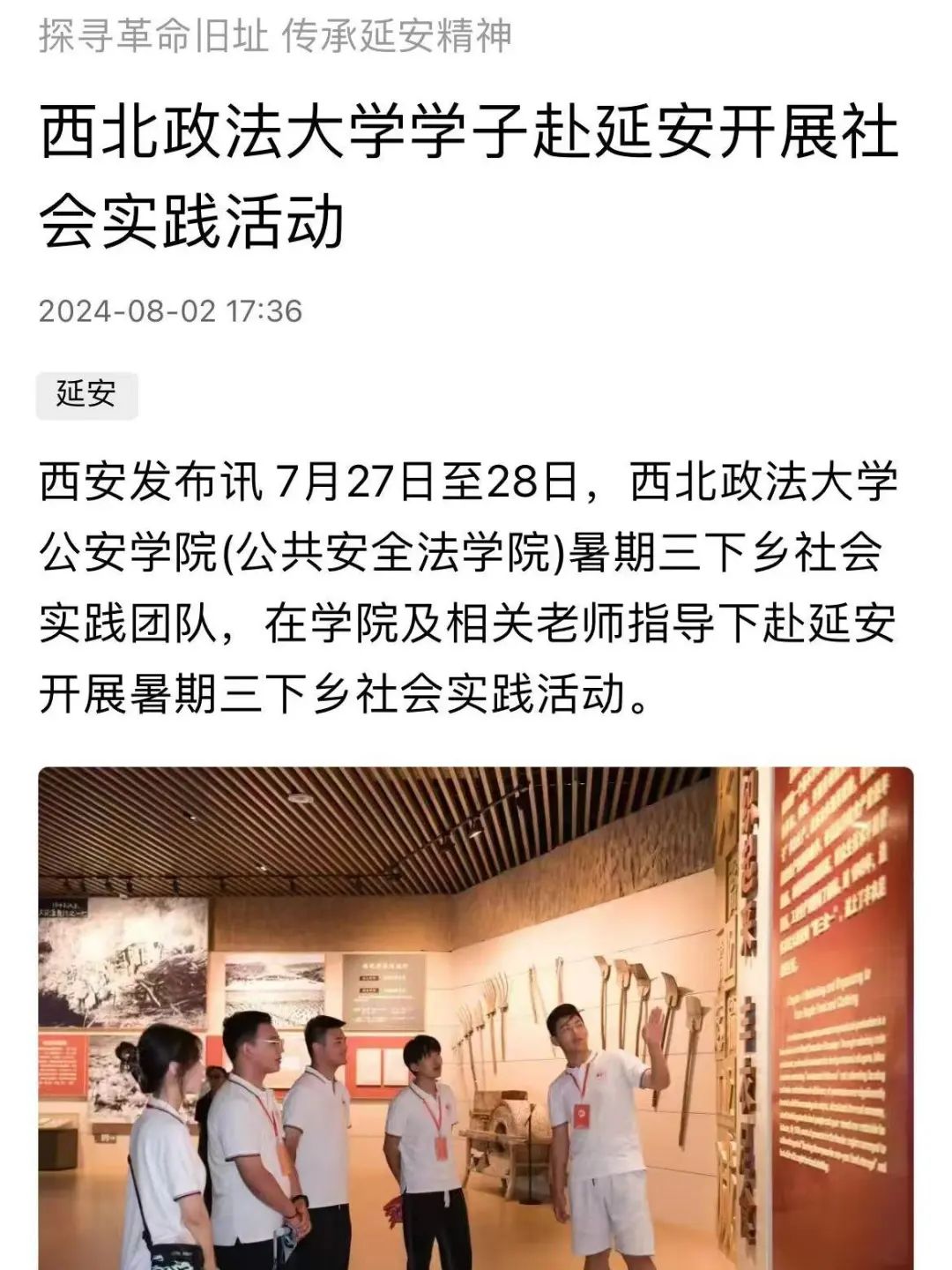 以行践言,以声传情—风车动漫 (公共安全法学院)赴延安访谈讲解员团队前往延安革命纪念馆、杨家岭革命旧址、中国人民抗日军政大学纪念馆、枣园旧址、南泥湾等地,通过实地参观学习、采访交流等多种方式,深入了解党在延安时期的革命斗争历程,全面感悟延安精神的深厚价值内涵。实践队将发掘延安精神的深刻内涵作为活动重点,取得丰厚成果,并被大学生云报、今日头条、环球网等多家媒体报道。