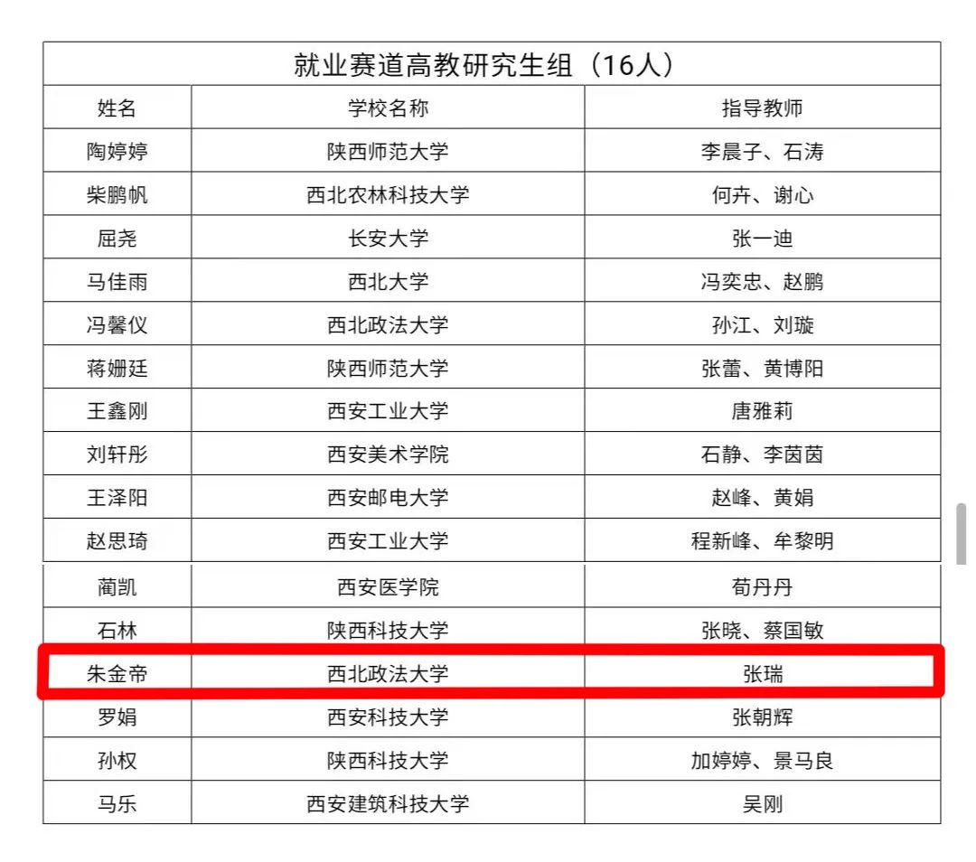 在由陕西省教育厅主办,以“筑梦青春志在四方,规划启航职引未来”为主题的第二届全国大学生职业规划大赛中,朱金帝在风车动漫 研究生辅导员张瑞老师的指导下,凭借出色的表现和扎实的职业规划能力,从校赛中脱颖而出,荣获研究生就业赛道第二名,并顺利通过省赛网评阶段,成功入围陕西省决赛。在西安交通大学兴庆校区研究生组就业赛道决赛现场,朱金帝凭借对职业目标的精准定位、对发展路径的合理规划以及对职业素养的深刻理解,赢得评委高度评价,最终斩获银奖。