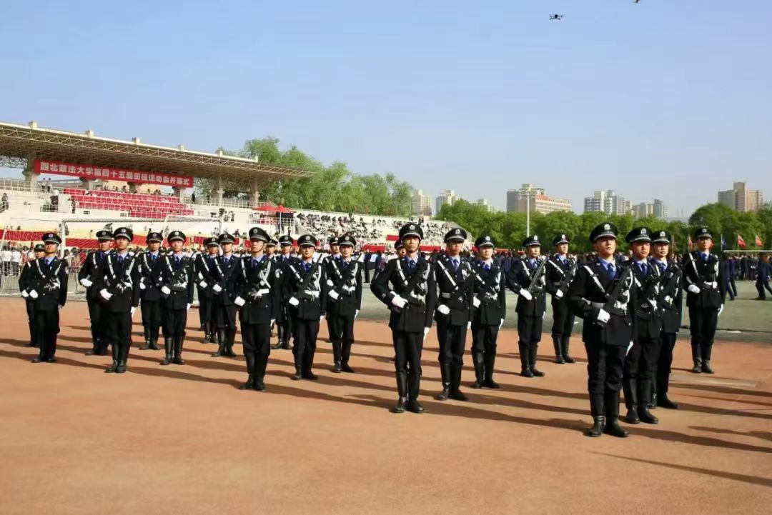 晨光中,国护队员们身着警服,银色的警徽与朝阳交相辉映。在全体师生肃穆的注视下,国旗护卫队身姿挺拔,引领各代表队方阵入场,拉开了运动会开幕式的序幕。