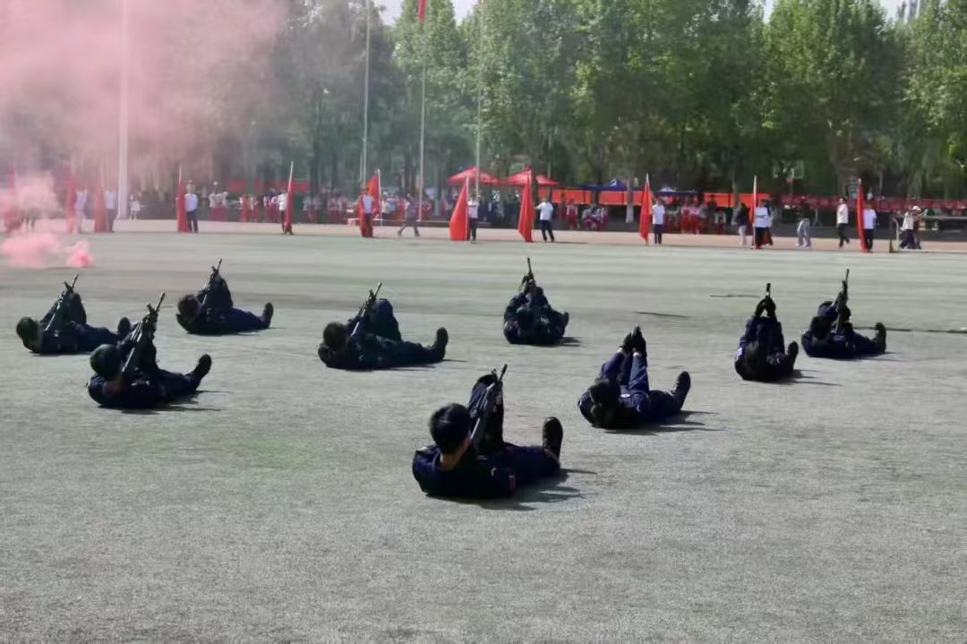 国旗护卫队的战术操表演将现场氛围推向高潮。在模拟“敌情”状态下,国护队员一系列高难度的战术动作如行云流水般一气呵成,干脆利落、力透千钧,尽显新时代青年的爱国热忱与使命担当,充分展现了他们昂扬向上的精神风貌。