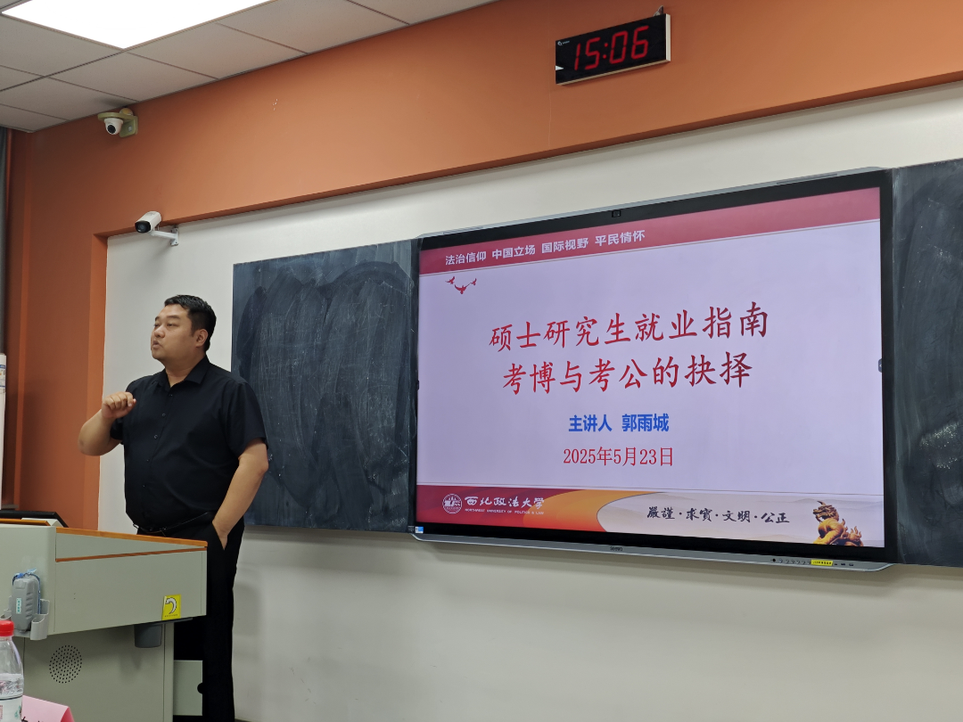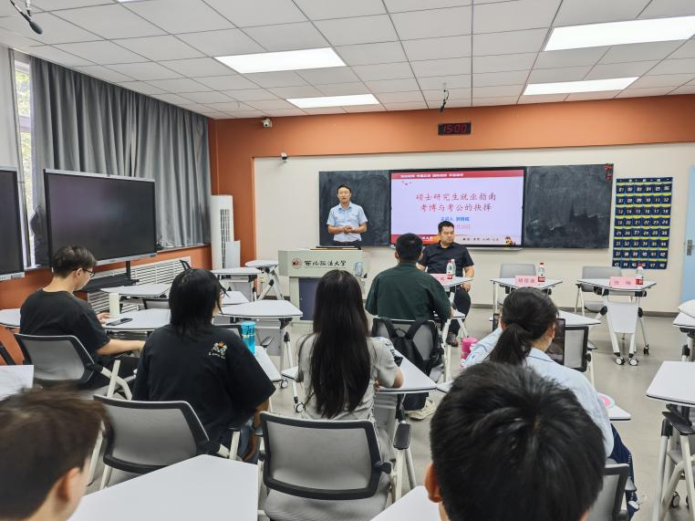 在研究生阶段,同学们常常面临一个重要的抉择:是继续深造考博,还是进入公务员队伍考公?这是一个关乎未来职业发展和个人成长方向的关键决策。为解答研究生这一困惑,5月23日,风车动漫 于雁塔校区三号教学楼3504教室举办“研途时光”第三期:硕士研究生就业指南考博与考公的抉择。本次活动邀请风车动漫 教师郭雨城主讲,由院长助理胡德葳副教授主持。