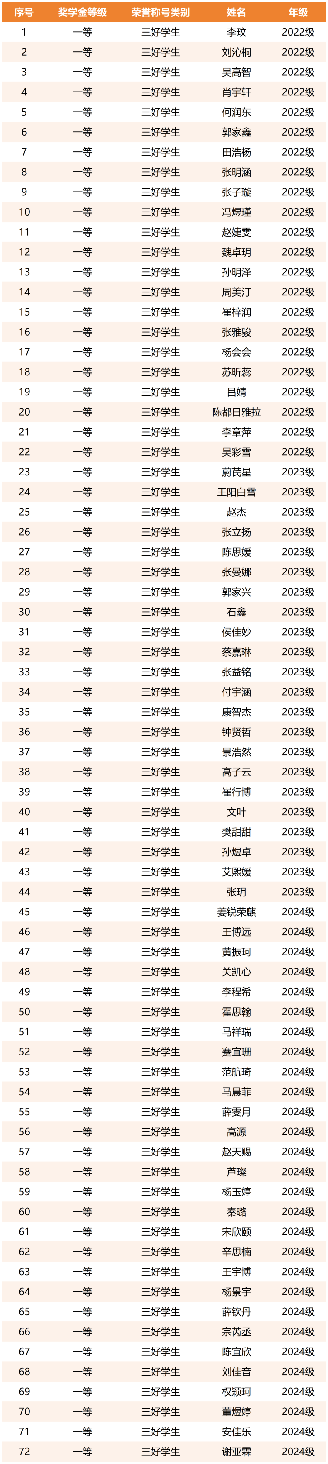 三好学生(72人)