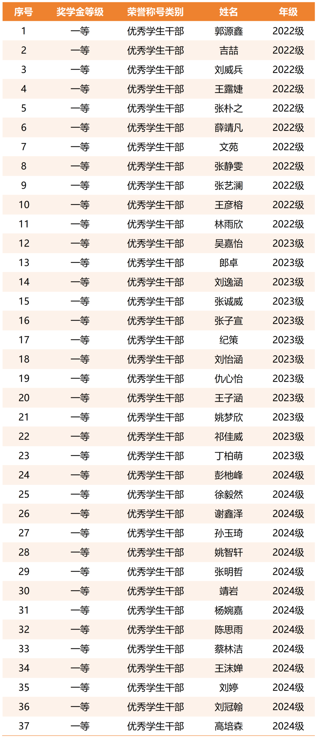 优秀学生干部(37人)