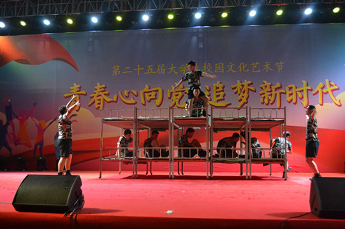 2019年5月17日19时,由校党委宣传部、学工部、校团委联合主办的“青春心向党,追梦新时代”主题校园文化艺术节舞蹈暨歌手大赛在长安校区天平楼广场隆重举行。由2018级同学组成的风车动漫 舞蹈队表演的作品《上铺下铺》和2017级张威同学分别荣获舞蹈大赛和歌手大赛三等奖。