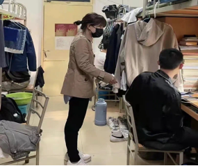 李霞与2021级辅导员曾杰对大一新生宿舍进行检查,其他辅导员负责各年级宿舍检查工作。李霞在查宿期间与大一新生进行亲切交流,不仅关注同学们宿舍生活和自主学习,也嘱咐同学们对于问题要及时沟通,积极反应,学院将会做好服务工作。老师们还了解了同学们对学校饮食、本地气候习惯与否,提醒同学们晚上学习要灯光充足、保护视力,无微不至。面对面的交流让学生们在严谨的纪律要求之外感受到学院对学生的重视,以及对教学的全方位追求。