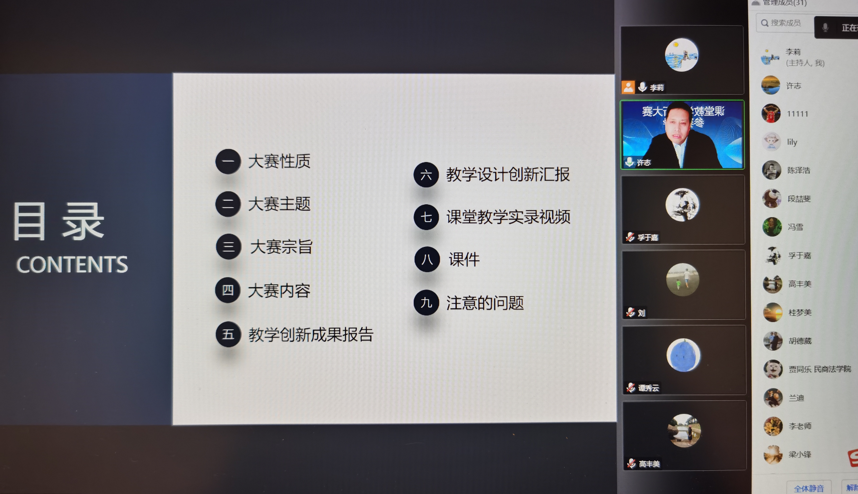 许志教授从教学创新大赛的性质、主题、宗旨、内容、教学创新成果报告、教学设计创新汇报、课堂教学实录视频、课件设计及大赛需注意的问题等九个方面对教学创新大赛进行了全面而细致的解读、分析,并结合自己的参赛经验和参与评审的经历,从不同角度对即将参加校级教学创新大赛的老师们给出了中肯的意见、建议和指导。讲座内容精彩丰富、有点有面,参加沙龙的老师们与许志教授还就一些焦点问题进行了交流探讨,纷纷表示受益匪浅、收获满满。