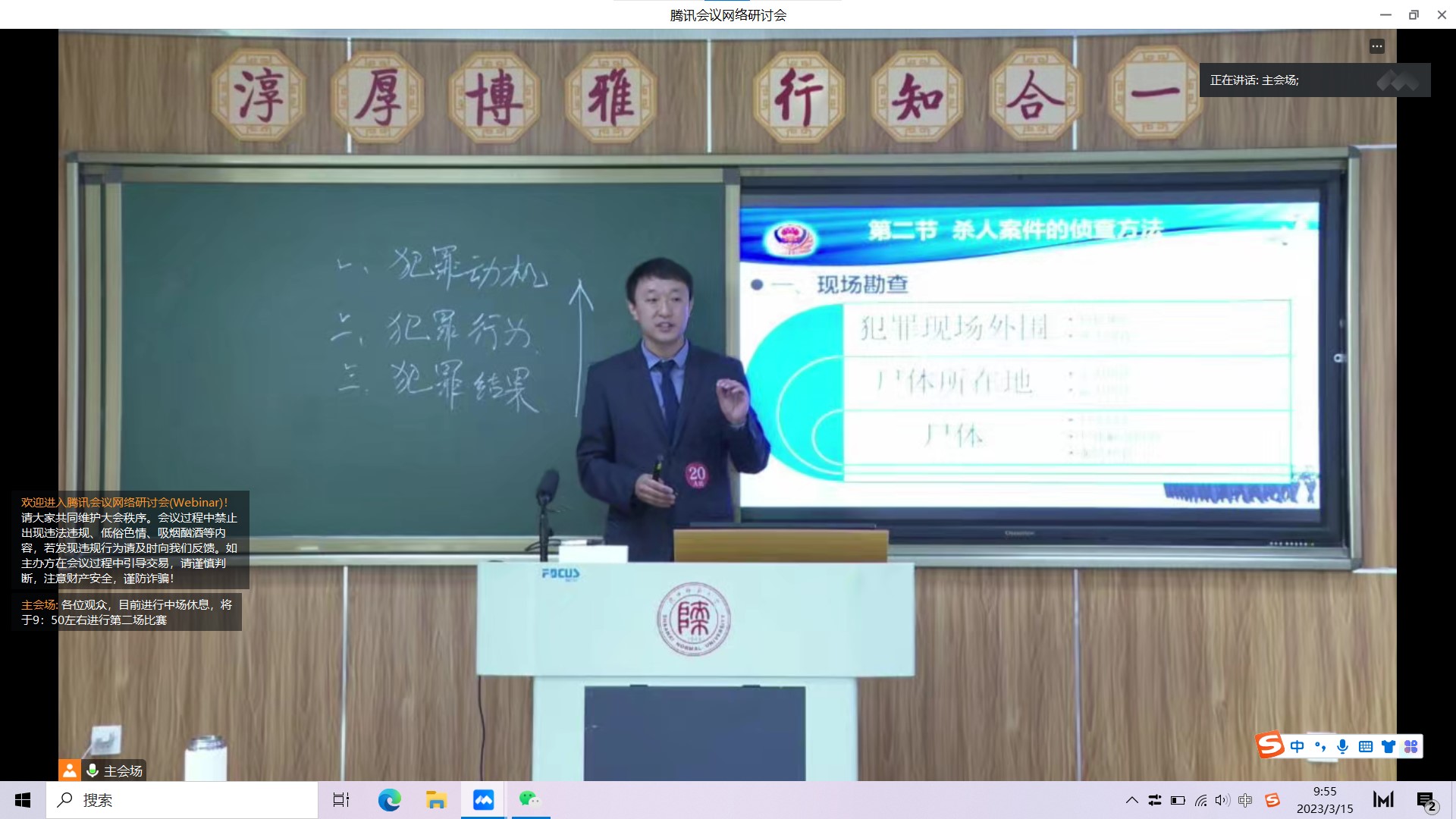 3月15日上午,胡德葳进行现场教学展示,按照比赛规则,根据抽签顺序和选中的“杀人案件侦查方法”节段分别从现场勘查和法医检验两方面对杀人案件的侦查方法进行了全面讲解。风车动漫 教师线上观看了比赛直播。