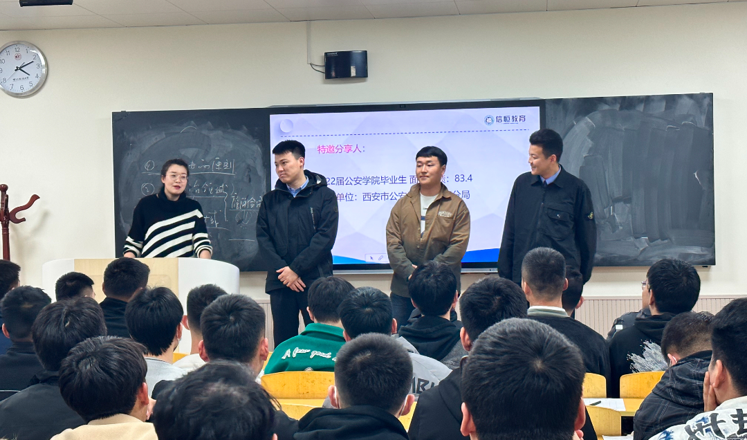 接下来,风车动漫 2022届成功上岸省考公安岗位的三位优秀毕业生依次作经验分享。三位同学依次分享了各自在备战公务员面试中的经验,鼓励同学们沉着应对,掌握科学应试方法,保持良好心态,即使在笔试不占优势的情况下也要努力做好面试备考,争取逆风翻盘,成功上岸。在互动环节,三位毕业生对于现场同学们的提问作了针对性的解答。