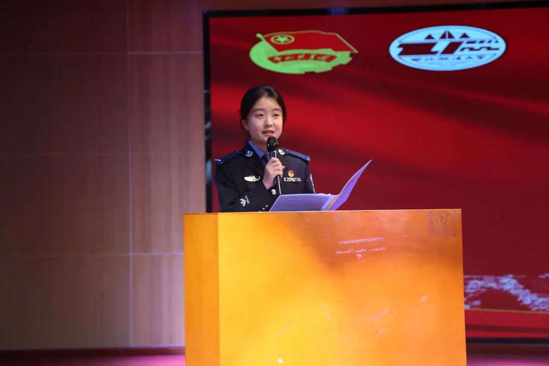 2021级6班姚朵朵作警务化训练总结发言,她对一年以来的警务化训练工作进行回顾总结,并对2022级全体同学在这一年训练中的成长和蜕变表示由衷的肯定和赞扬。