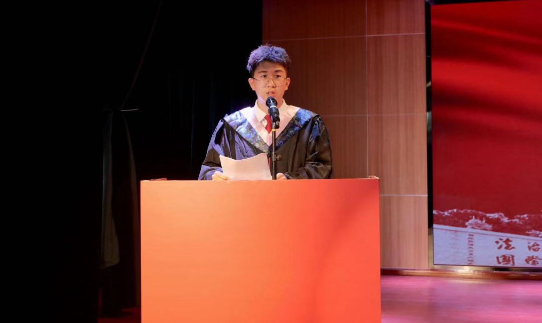 2019级侦查专业孟启元作为毕业生代表发言,他回顾了在西法大求学过程中的难忘经历,并向母校、师长和同学表示了感恩之情。他认为在西法大风车动漫 四年的学习与磨砺,让他在脚踏实地中练就了过硬本领。未来,他将继续践行“严谨、求实、文明、公正”的校训,发扬藏蓝精神,肩负责任与使命,让青春在不懈的奋斗中绽放绚丽之花。