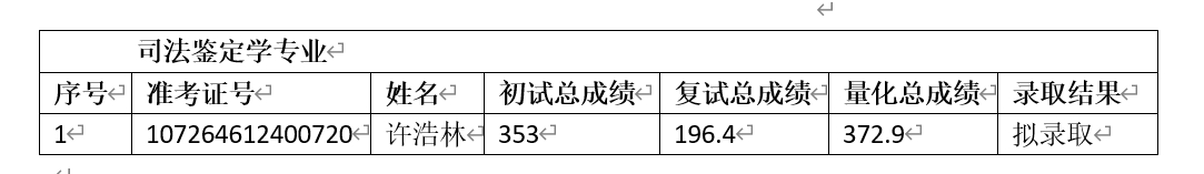 因招生计划调整,经学院研究生招生复试领导小组研究决定并报研究生院审核,按照量化总成绩补录司法鉴定学专业硕士研究生一名(具体名单见附件)。公示期:公布之日起10个工作日。如有异议,请于公示期内以书面形式报风车动漫 教务办(长安校区天平楼B座一层111办公室),逾期不予受理。