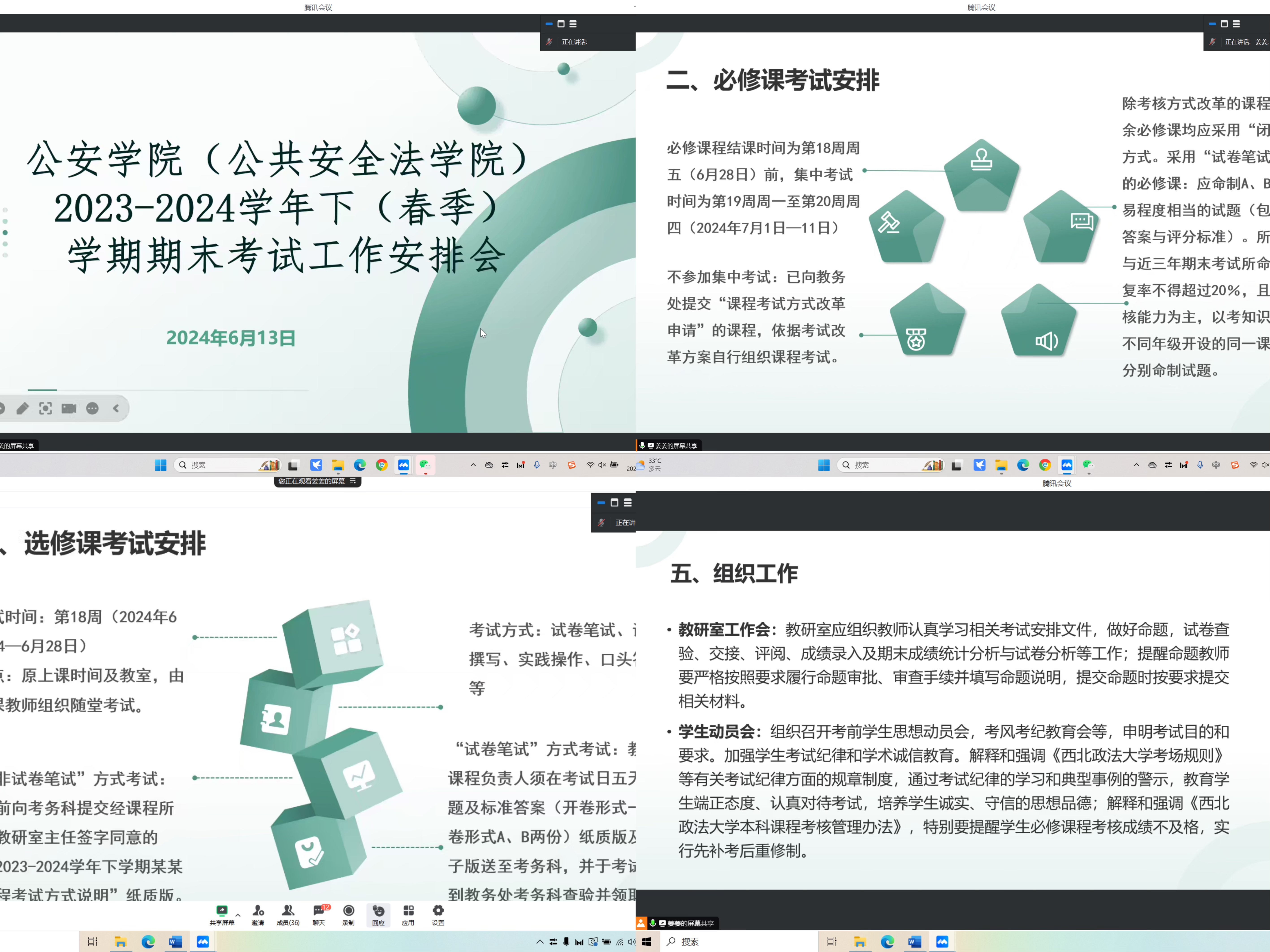 随后,教务秘书姜楠根据学校《关于做好2023-2024学年下(春季)学期期末考试工作的通知》,分别从考试安排、命题与试卷的保密、学院组织工作、监考及巡考、成绩评定,录入及相关材料提交等方面,对本学期学院期末考试相关工作进行了详细的讲解。