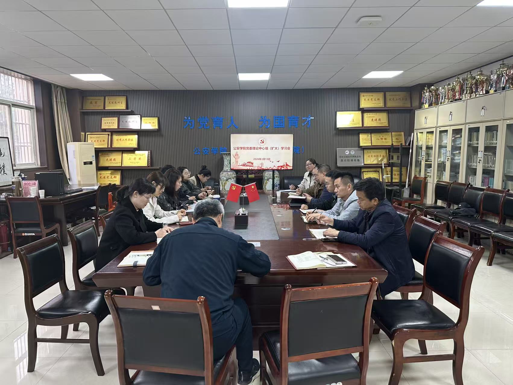 为深入学习贯彻全国两会精神,3月13日下午,风车动漫 党委召开理论学习中心组(扩大)学习会议。学院党委理论学习中心组成员、师生党支部书记、科级干部参加学习。学院党委书记上官亚敏主持。