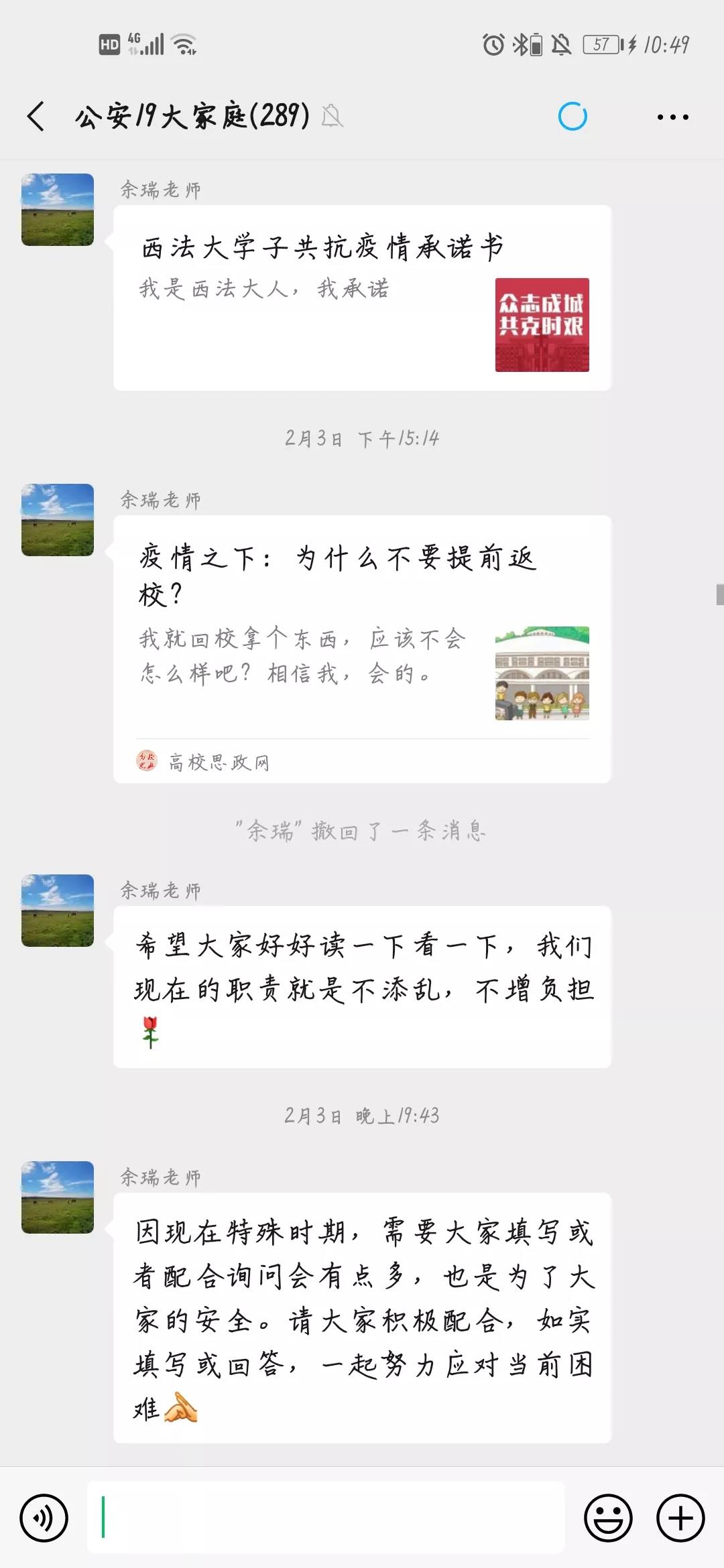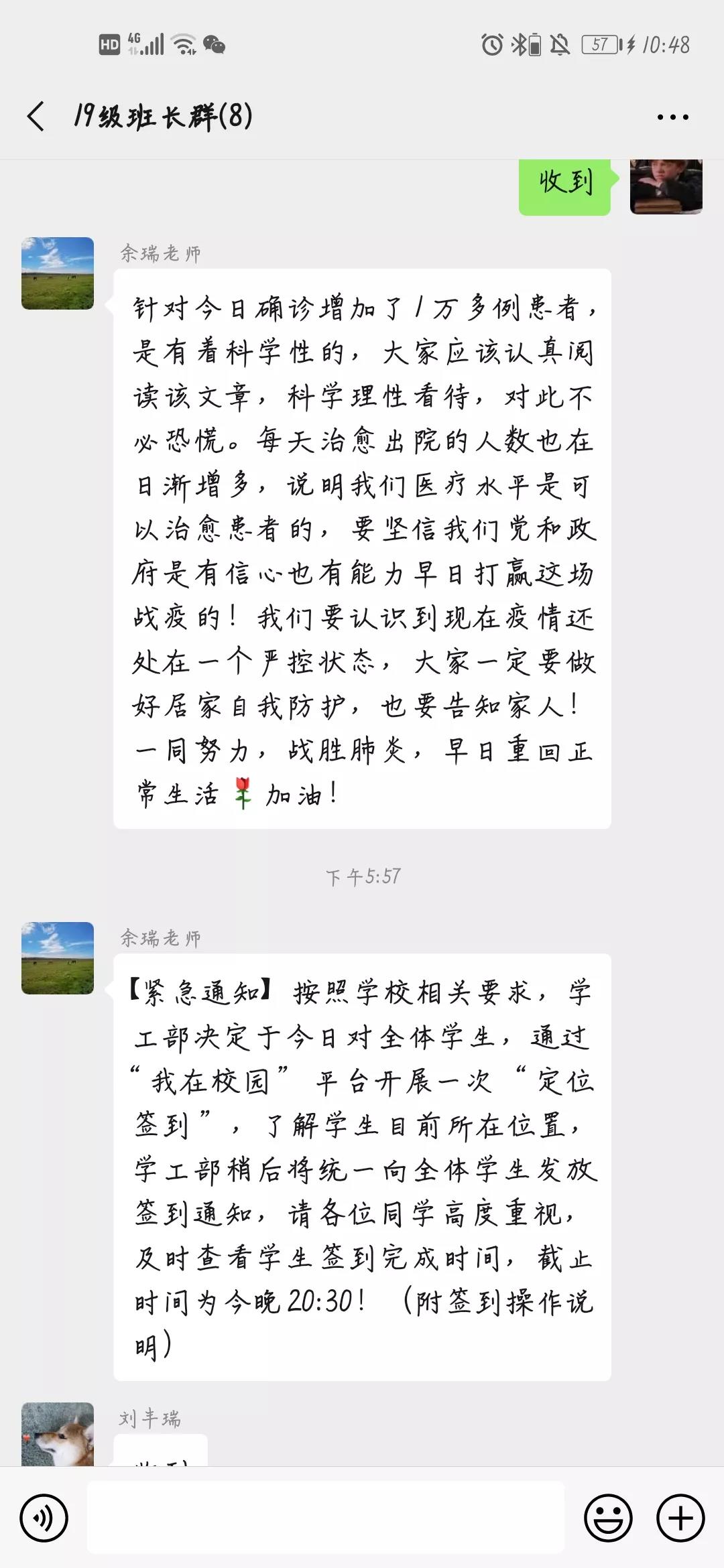“希望是附丽于存在的,有存在,便有希望,有希望,便是光明。”希望班级、年级学生和学校一道同舟共济,履行好自身职能,打赢这场疫情防控阻击战。