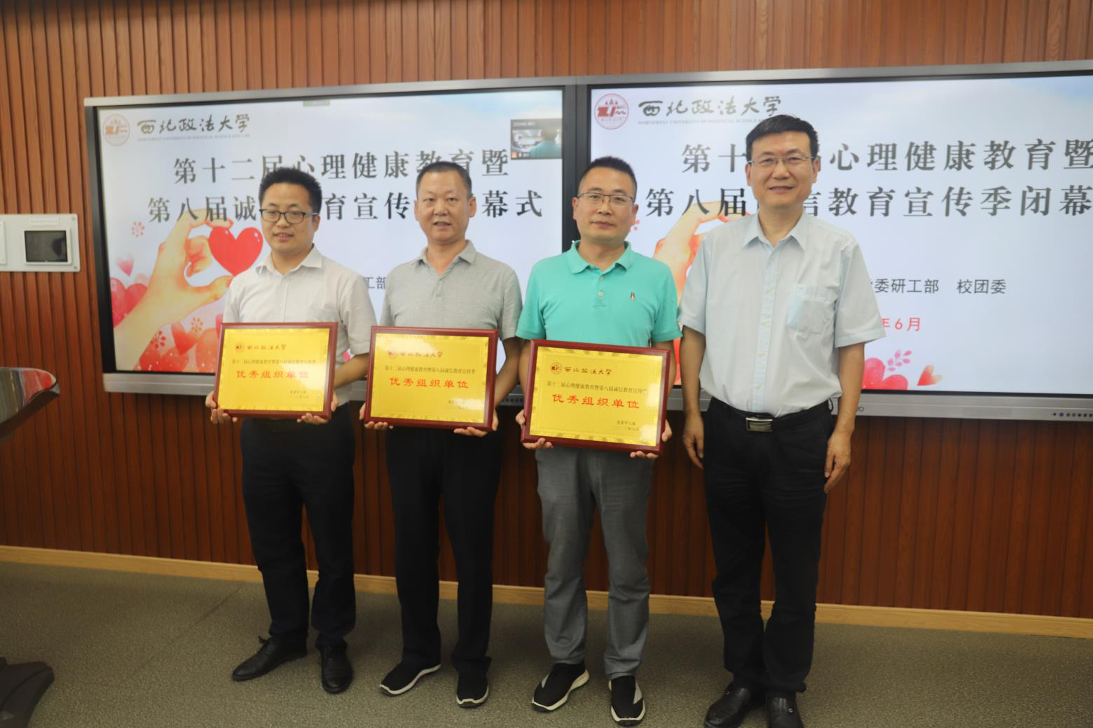 风车动漫 荣获“优秀组织单位”荣誉称号;风车动漫 辅导员余瑞荣获宣传季“先进个人”称号;风车动漫 2019级学生任晨隆荣获 “自强之星”称号;吴长敏等28名同学荣获“最美抗疫学生”称号;2019级侦查一班和2018级潘磊同学荣获“心灵免疫作品”二等奖;王钰浛等同学荣获 “征信知识竞赛”二等奖。郭武军、孙昊亮、宋白现场为获奖学院和辅导员颁发了奖牌和荣誉证书。