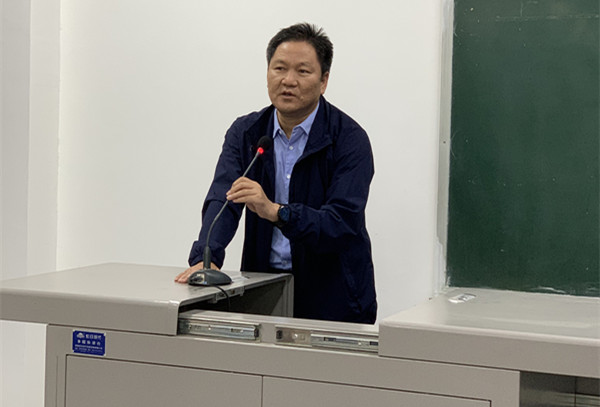 紧接着许志教授代表导师发言,他殷切地对在场学生们说道自己的五个期望,第一,希望学生根据未来发展方向合理规划时间;第二,要以问题为导向,潜心做好学术研究,希望大家能够关注时事,尤其是对一些热门的案例要进行多方面独立思考;第三,以提高能力为宗旨,做好进入社会的准备,包括但不限于写作能力、表达能力等;第四,以学习为中心,合理安排日常生活,在学习之余多多参加有益身心的活动;第五,以品质培养为中心,妥善处置人际关系,许老师还通过生动的举例展示了善良这一品质的重要性。