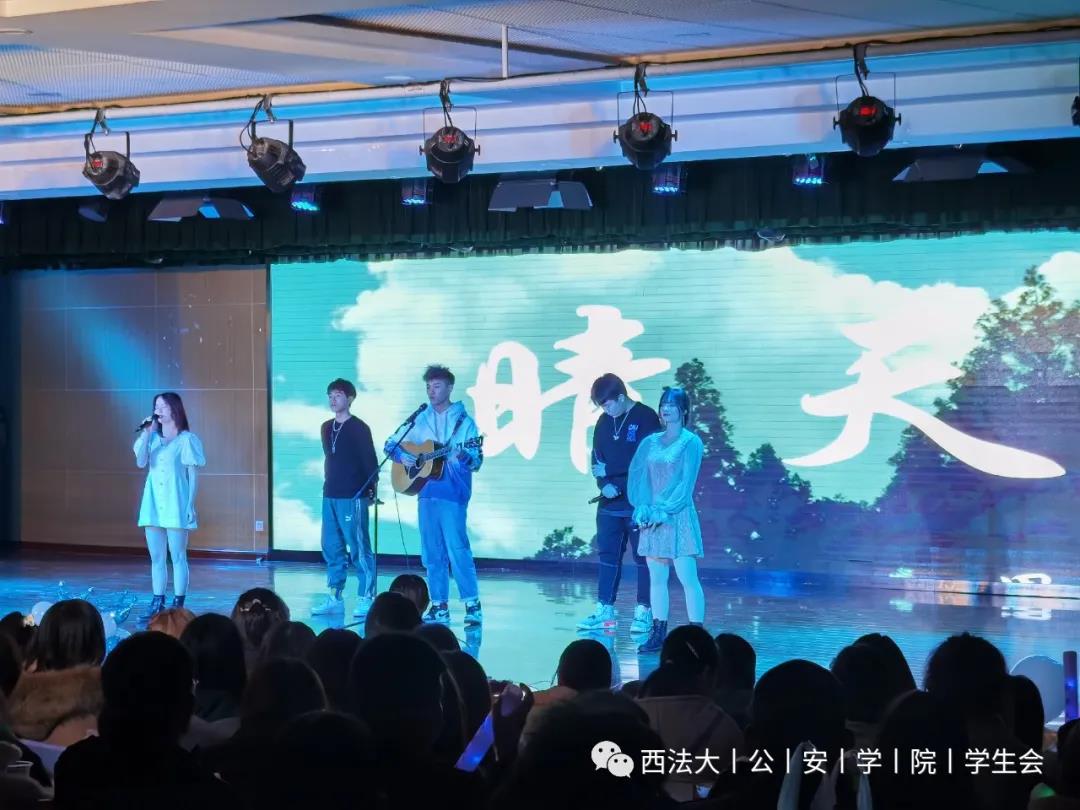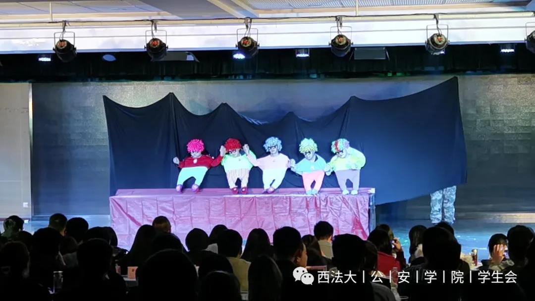 下半场由风车动漫 胡德葳老师带来的歌曲《song F》将全场的气氛推向了高潮。《抗疫先进个人访谈》中参加抗疫的公安学子向观众们分享了自己的心得,赢得了场下的阵阵掌声。小品《疫中人》同学们用表演淋漓尽致地向观众再次展现了疫情期间坚守在一线的党员们,用生命守护人民。由国旗护卫队带来的情景剧《重拳出击》再次将晚会的气氛推向了又一个高潮。