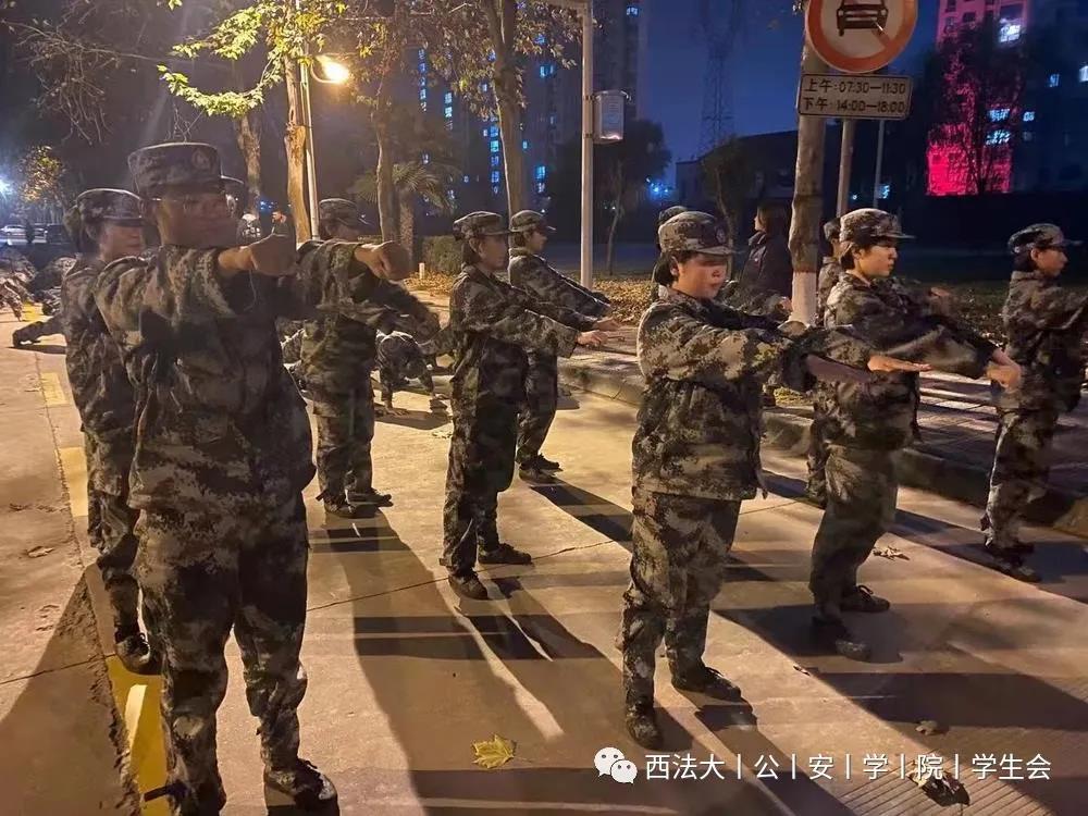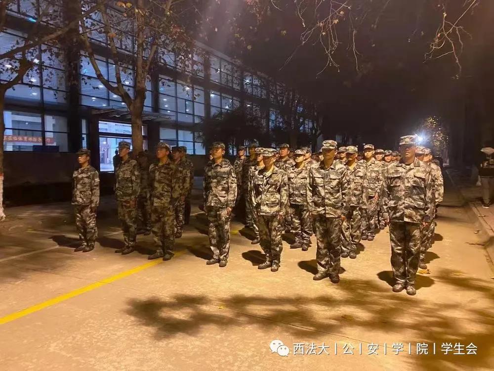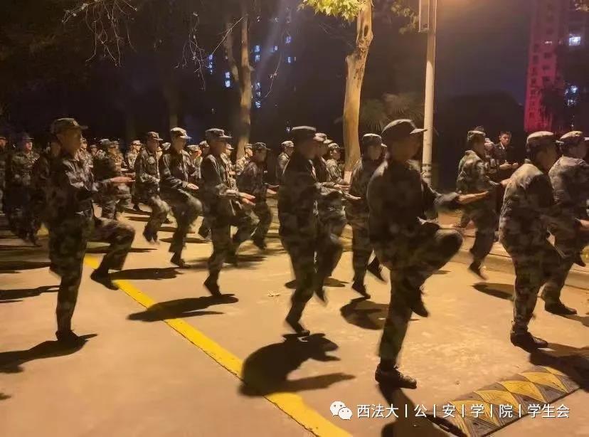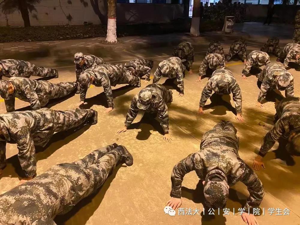 学生们在做过简单的热身之后全体带至水泥地篮球场前的国护路上。夜幕笼罩的灯光下,素拓活动正式开始。本次素拓活动主要分为三个项目。第一项:体能拉练。“俯卧撑、高抬腿、开合跳、鸭子步、蝎子步……”每一个活动都进行了有序的分组训练。比赛开始,场上你追我赶,毫不认输。寒冬虽凛冽但昏黄的灯光下,公安学子的呐喊与踏步声却丝毫未停歇。