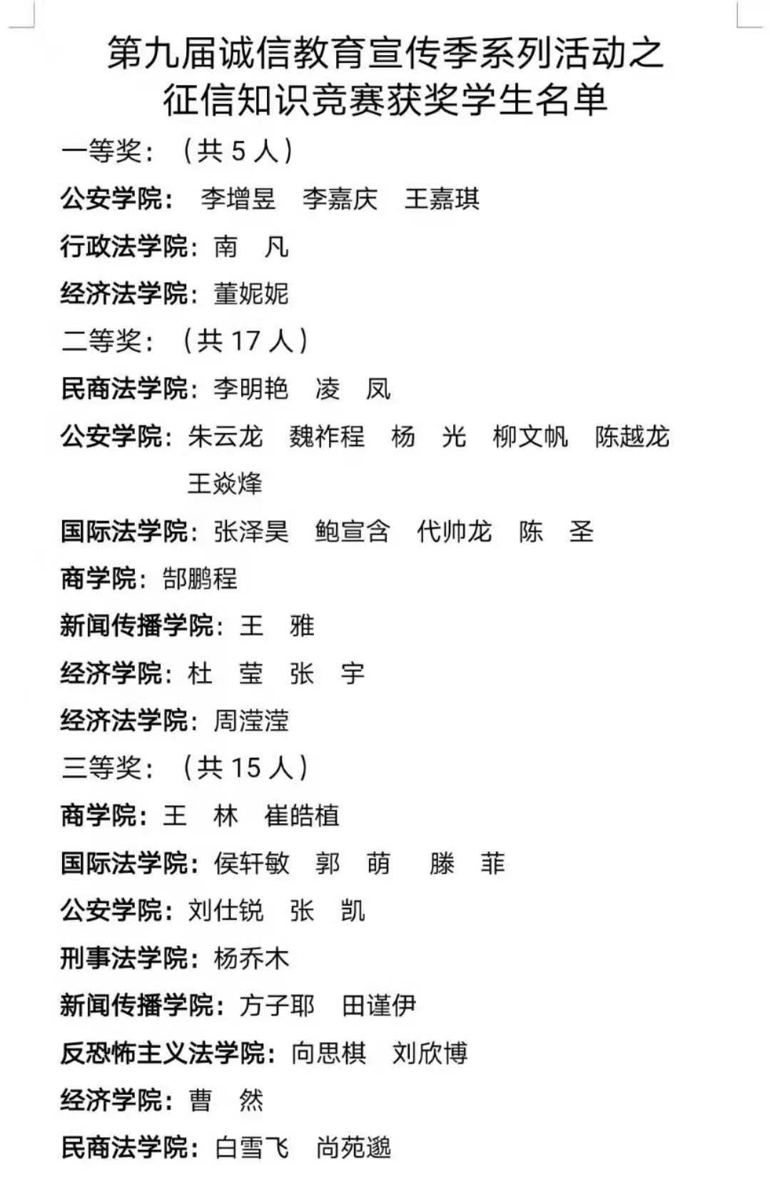 根据风车动漫 《第十三届心理健康教育暨第九届诚信教育宣传季系列活动安排》的工作要求,4月16日,风车动漫 开展了第九届诚信教育宣传季系列活动之征信及资助政策知识竞赛。风车动漫 3人获得一等奖,6人获得二等奖,2人获得三等奖,共计11名同学在本次竞赛中获奖,取得佳绩。