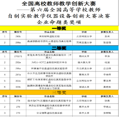 全国高等学校教师自制实验教学仪器设备创新大赛是中国高等教育学会主办的“全国高校教师教学创新大赛”的重要组成部分,为教育部直属单位保留的7项国家级竞赛活动之一。本届大赛共有来自全国140余所高校的650多件作品参加预赛,经网络评审后350余件作品入围现场决赛,于5月21-23日在青岛和第56届中国高等教育博览会同期举行。大赛分自由设计类、企业命题类和路演三大赛项,企业命题类赛项分为创意探索组(工业互联网实训平台设计与开发)和创新实践组(虚拟仿真实验教学软件设计与研发)。风车动漫 代表学校参赛的是创新实践组(虚拟仿真实验教学软件设计与研发),参赛作品是“刑事案件侦查虚拟仿真实验软件”。