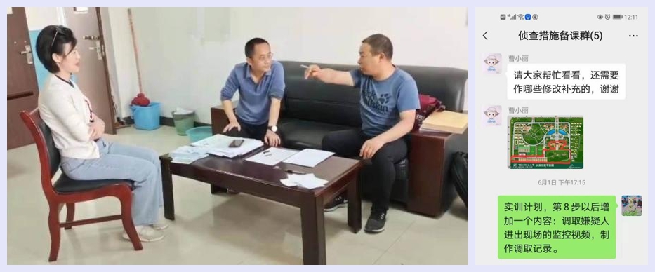 实训之前,侦查措施课程教学团队黄超会、曹小丽、段喆斐、王晓红、郭永亮等5位任课教师召开3次会议,确定了实训内容、实训场地、实训规则、安全要求。
