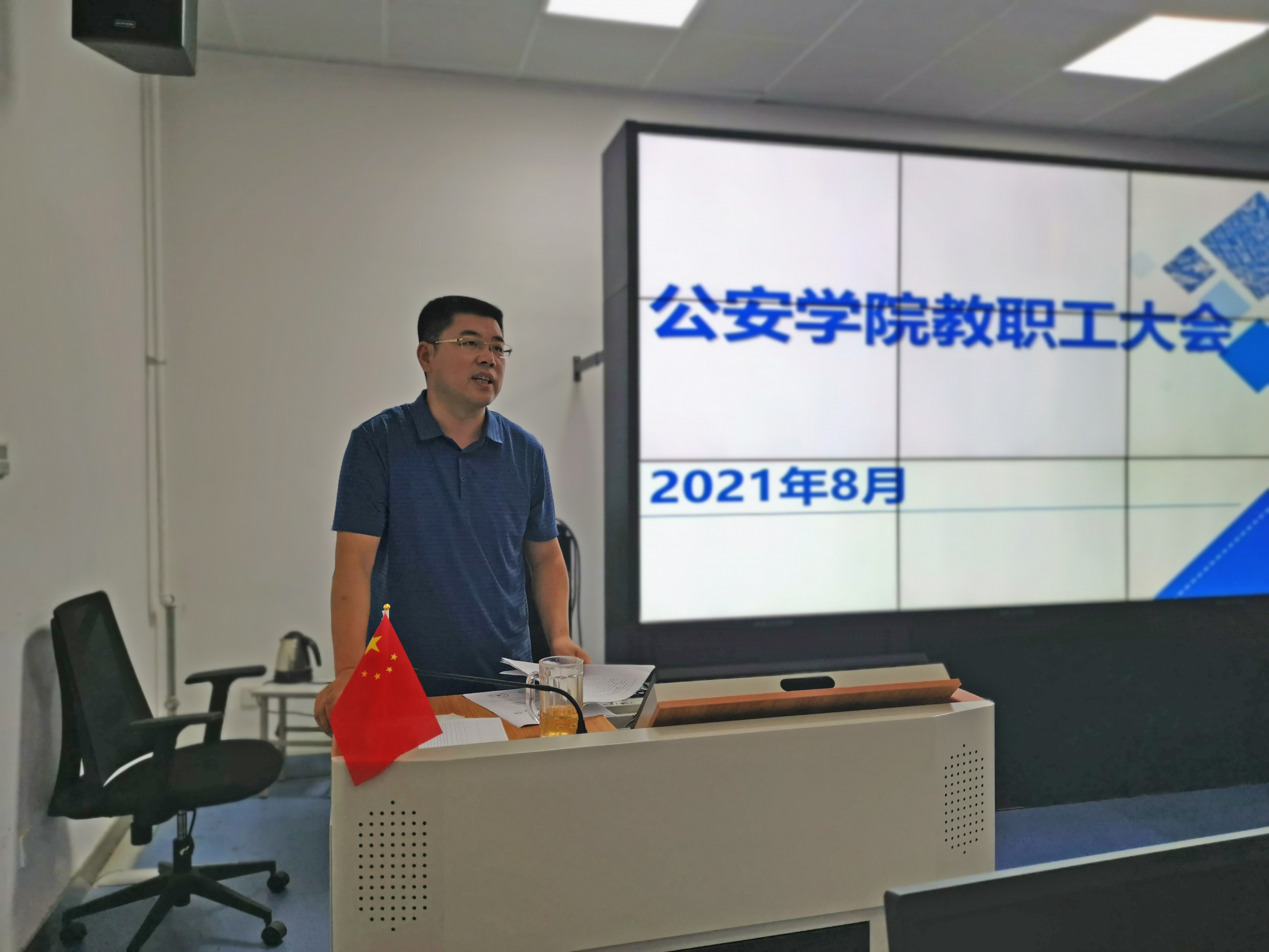 院长程军伟首先对学院“治安学”专业暂停招生、新设“法学(公共安全法方向)”专业做出说明,分析了正式转型为法学院、学科专业调整背景下,学院发展面临的形势任务和努力方向,强调了教学在人才培养中的核心作用,强调了学校学科攻坚任务对科研工作的最新要求,对学院学科专业转型开好局、起好步做出动员和安排。