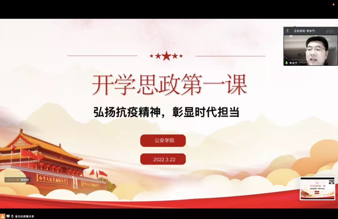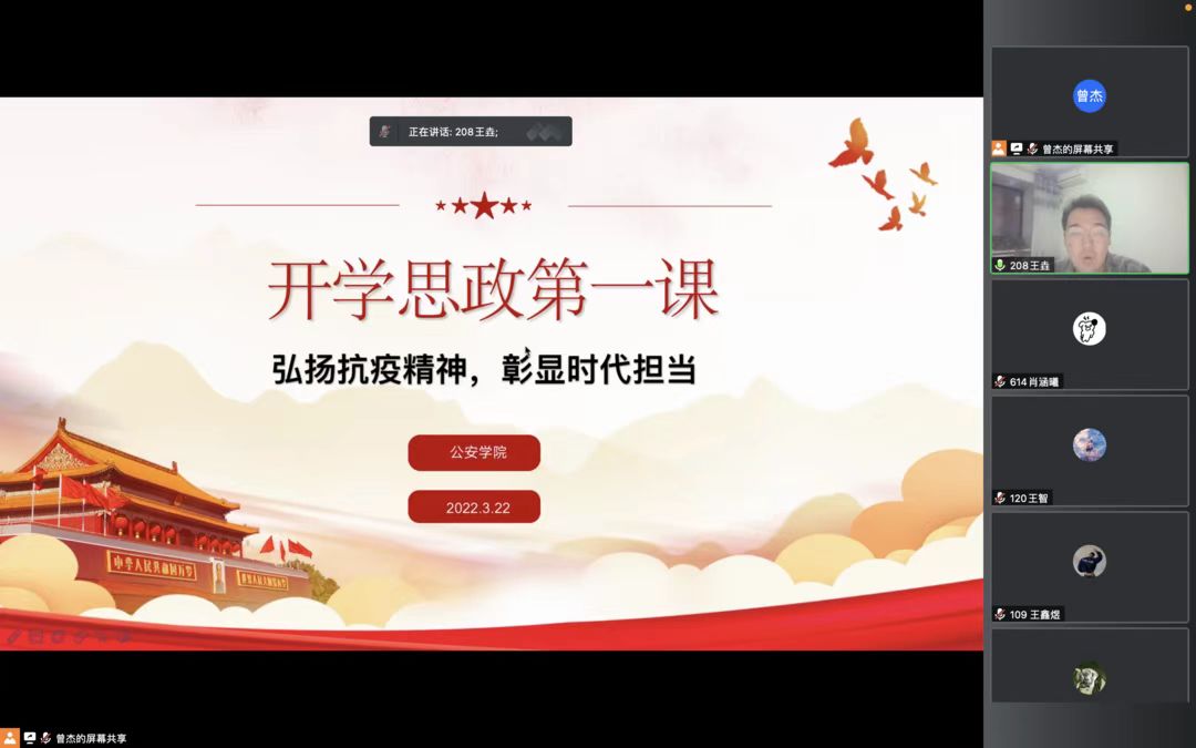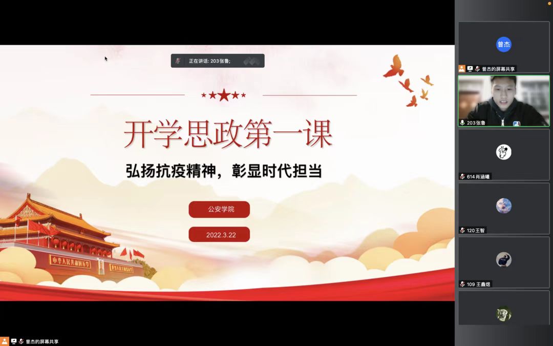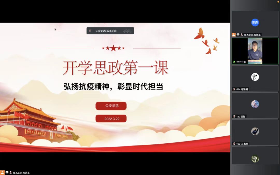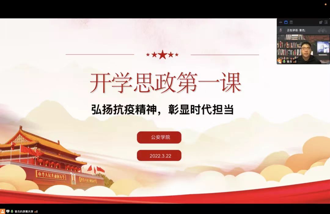 在课程尾声之际,曾杰老师指出在现阶段抗疫过程中,风车动漫 有一大批学子积极投入到家乡疫情防控志愿服务中,展示了公安学子无私无畏,勇于担当的精神风貌,也展现了当代青年的思想觉悟和时代担当。最后他希望大家通过思政第一课后有所收获,在今后的学习生活中,不畏艰难,踔厉奋发,展现出新时代大学生的责任与担当!