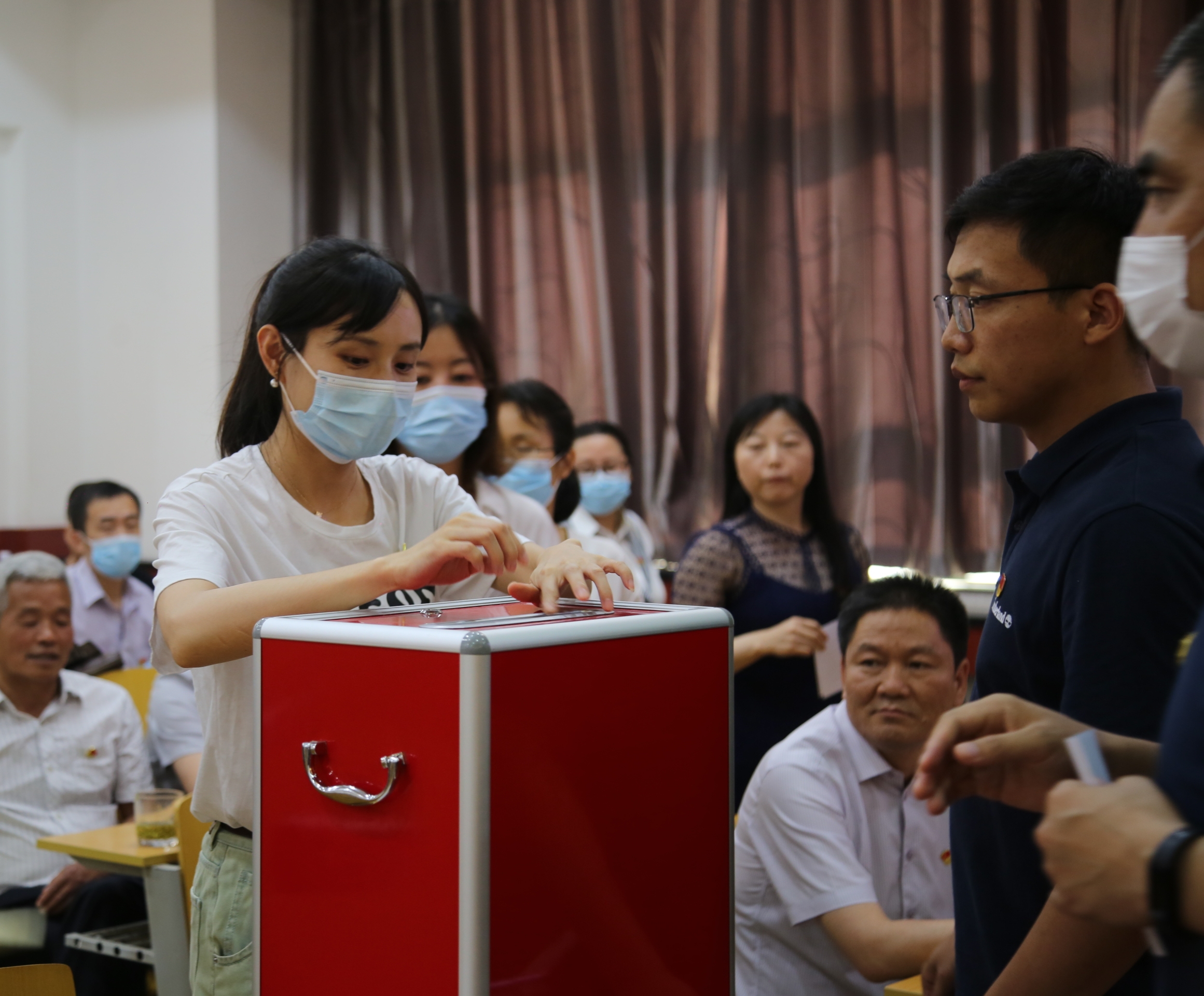 大会第二阶段,在总监票人刘妍良的主持下,选举正式开始。在清点到会人数、介绍代表候选人预备人选简历、发放选票等环节之后,全体正式党员郑重填写选票、有序投票,最终差额选举产生风车动漫 出席学校第四次党代会代表9名。