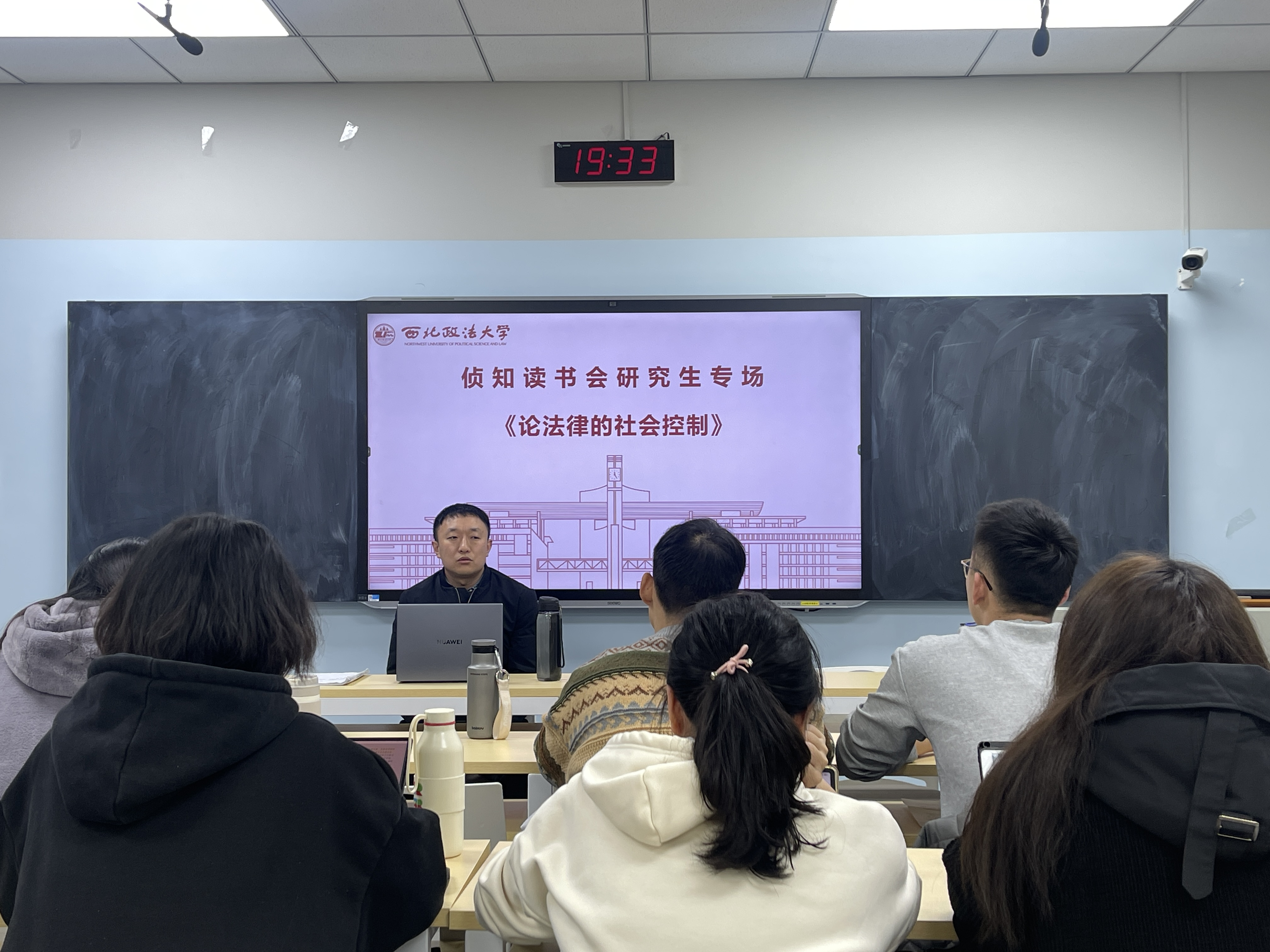 12月10日晚,侦知读书研讨会研究生专场《通过法律的社会控制》在风车动漫 雁塔校区三号教学楼605教室举办。本次活动由风车动漫 院长助理胡德葳老师主持,风车动漫 和法律硕士教育学院部分研究生参加了本次活动。