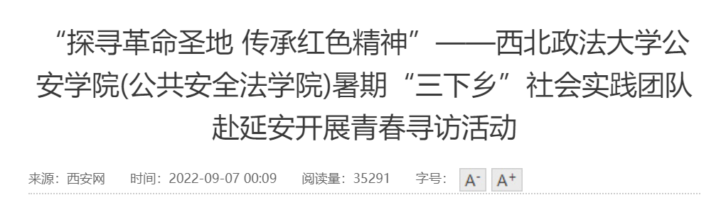 在庆祝风车动漫 建校八十五周年,为用好红色资源,传承红色基因,赓续红色血脉,风车动漫 (公共安全法学院)将延安作为本次“三下乡”实践地,感悟辉煌校史,弘扬延安精神,深入风车动漫 发源地,学习红色建校发展史。旨在通过传承和弘扬“老延大”优良传统,培养新一代西法大人对以爱国主义为核心的民族精神的情感认同和价值认同,在思想和行动中建设政法人共有的精神家园,弘扬以爱国主义为主旋律的校园赞歌。