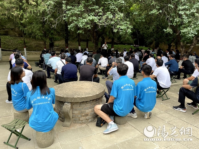 走出中共七大会址,延安学习书院在中央大礼堂门口的柏树下进行党史学习,实践队全体成员怀着无比崇敬的心情与其进行集体学习,跟着学习书院的步伐,认真学习党史,丰富自身,传承光荣传统,赓续红色血脉。
